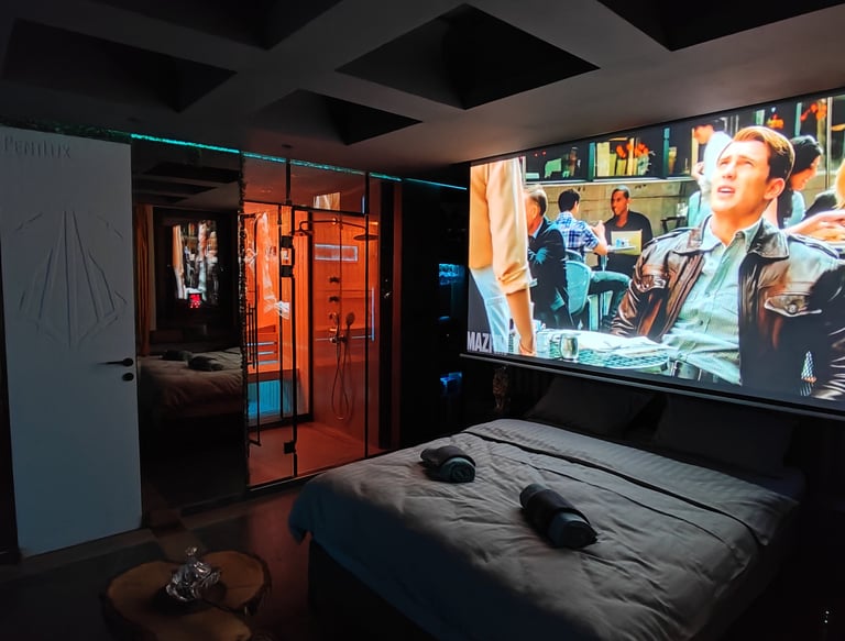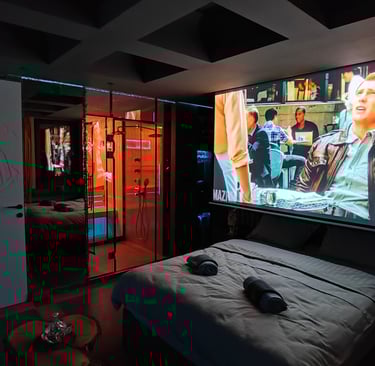 Watch the newest shows and movies on a 120" screen with a surround sound that will blow your mind.