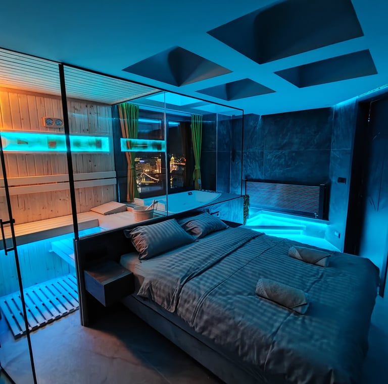 Rejuvenate your senses with your own personal luxurious spa center with a hot-tub and a sauna, inside your private apartment.